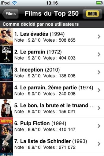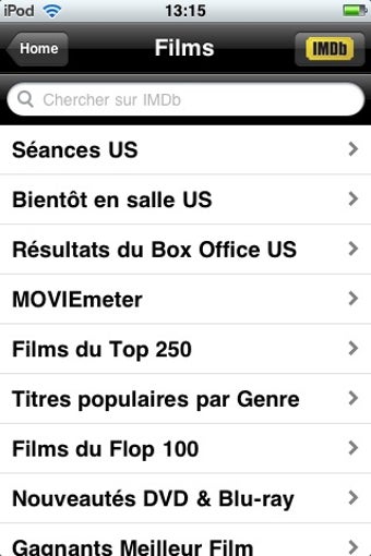 La navigation entre les parties films, TV et stars est aisée et on prend vraiment plaisir à consulter l'énorme base de données disponible (notamment le top 250), peut-être davantage que sur le site web d'IMDb. Il est également possible de consulter les horaires des séances de cinéma.